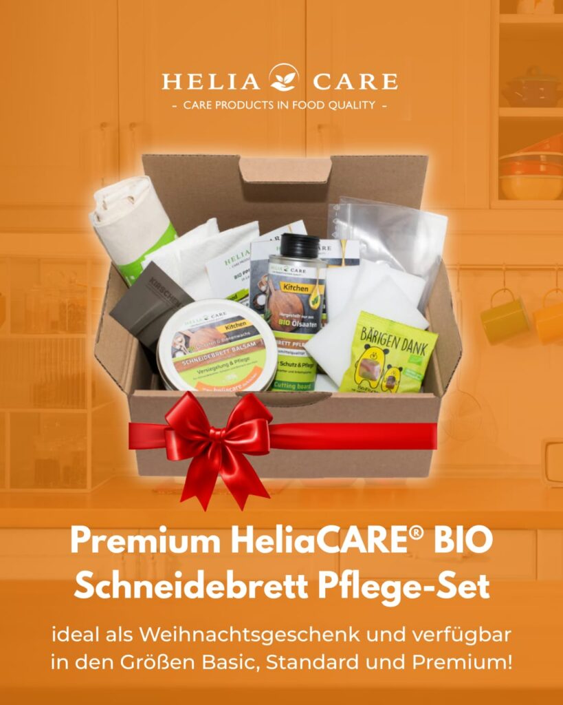 Verleihen Sie Ihrem Holzschneidebrett und Ihrer Küchen Naturholz Arbeitsplatte einen samtigen Glanz und natürlichen hygienischen Schutz vor Fleisch- und Geflügelsaft. Durch unsere kaltgepressten Naturöle mit echtem Bienenwachs ist der Kontakt mit Lebensmitteln garantiert unbedenklich. Weiterlesen…