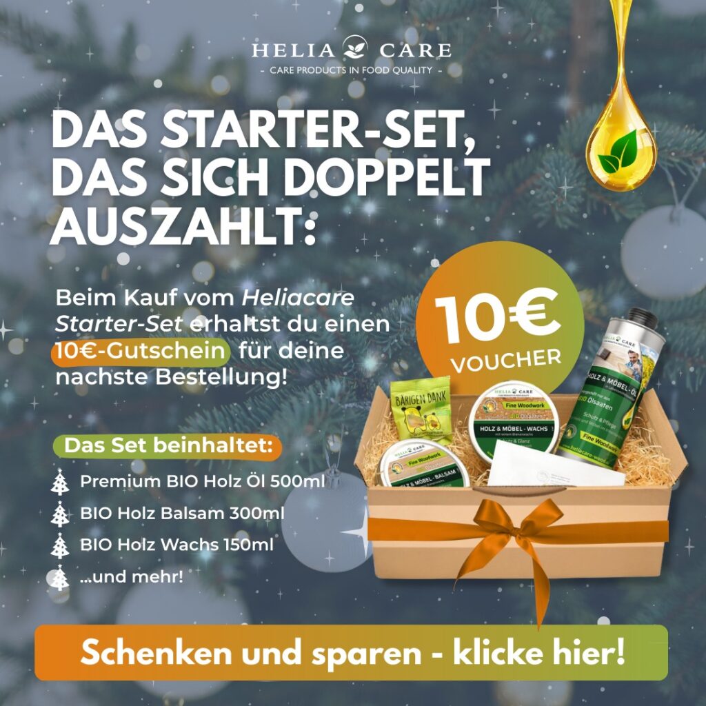 Ihr Holz will gut gepflegt und geschützt sein. Die dafür notwendigen Premium Pflegeprodukte finden Sie hier bei HeliaCARE -wood-. BIO Holzschutz ohne Chemie und Zusatzstoffe für gesundes Wohnen, waren für unsere Entwicklungsabteilung eine Herausforderung. Hergestellt nur aus BIO zertifizierten Ölsaaten (Samenkörnern) sind unsere HeliaCARE -wood- Produkte wohl einzigartig. Weiterlesen…